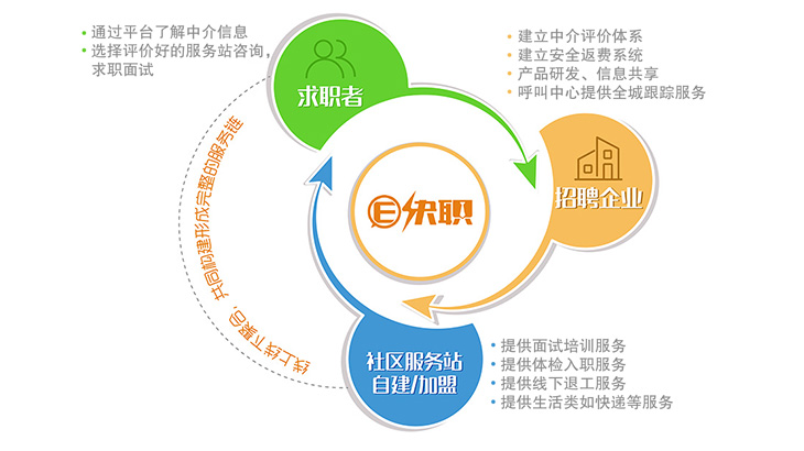 2.O2O的求职平台,求职者可自己选择经平台认证信誉度高的线下加盟店安心快捷的求职;
